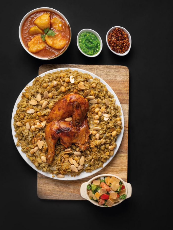 بالفرن مع عيش البرياني النثري والمرق أو الدقوس والمعبوج الأخضر الخاص بنا والصوص