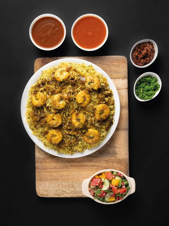 روبيان مجهز ومبهر بنكهات مطعم زعفران الخاصة مع العيش النثري المطبوخ بالثوم