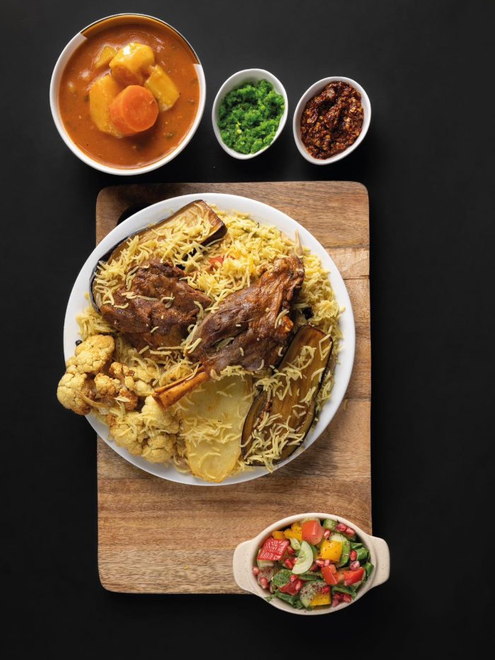 6.75د.كقطع من اللحم يتم تجهيزها وتبهيرها بنكهات مطعم زعفران الخاصة مع العيش النثري مع