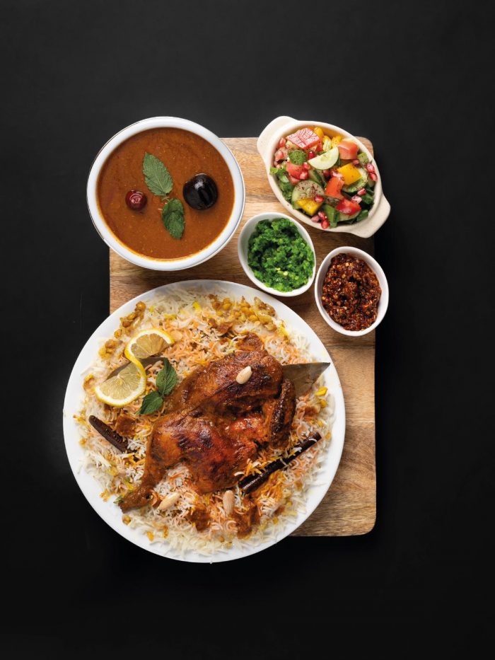 بالفرن مع عيش البرياني النثري والمرق أو الدقوس والمعبوج الأخضر الخاص بنا والصوص