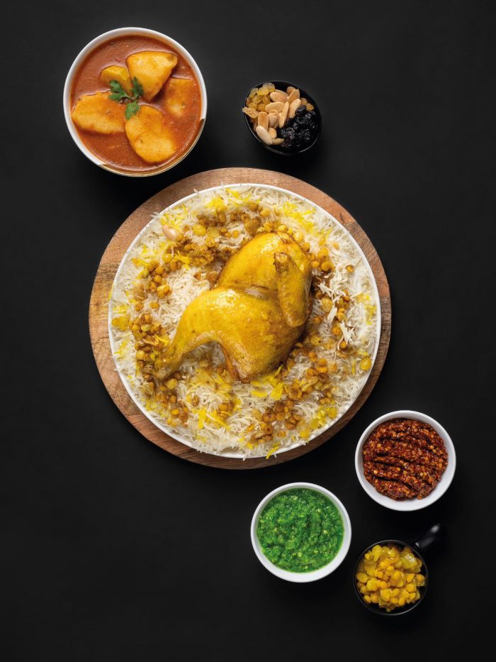 3.25د.كنصف دجاجة يتم تجهيزها وتبهيرها بخلطة البرياني الخاصة بمطعم زعفران وتحميشها