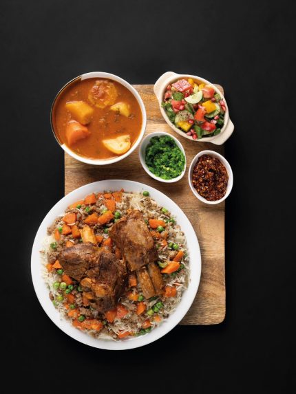 7.00د.كقطع من اللحم يتم تجهيزها وتبهيرها بنكهات مطعم زعفران الخاصة مع العيش النثري